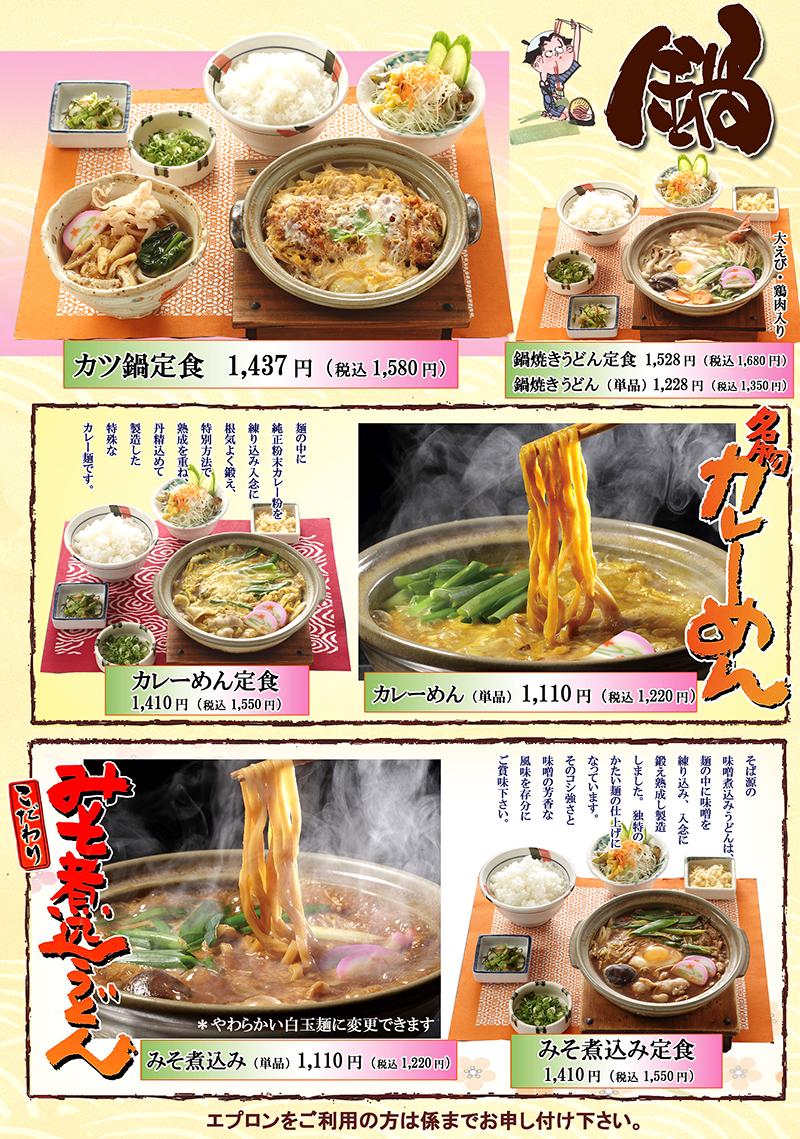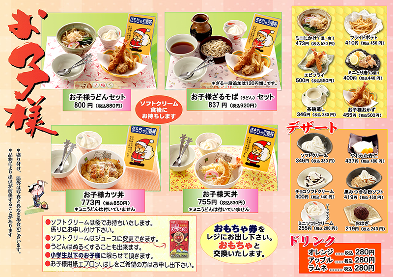お子様用紙エプロン、はしをご希望の方はお申し出ください。